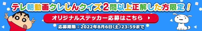 ※テレ朝動画クレヨンしんちゃん見放題パックの会員になり、本配信を視聴いただいた方が視聴画面よりクイズにご参加いただけます。