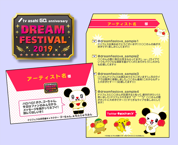 あなたのメッセージをアーティストへお届け!!『テレビ朝日 ドリームフェスティバル2019』 公式応援キャラクター