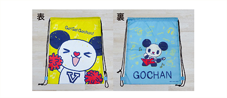 応援ゴーちゃん。とギターゴーちゃん。がデザインされた、とってもかわいい「ゴーちゃん。ナップサック」です。フェスなどのイベントでも活躍すること間違いなし!子どもから大人まで楽しく使えちゃうアイテムです。