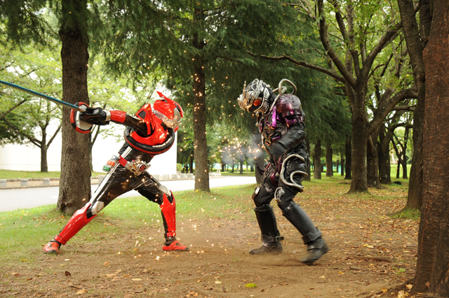 ロイミュード007と凶悪犯の多賀(谷充義)が、ネオバイラルコアで一体化。新たな融合進化態ソードロイミュードが誕生した。