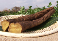 いぶりがっこ生産者 高橋幸子さん 秋田県 いぶりがっことは、秋田県屈指の豪雪地帯である横手市山内地域で、自然とうまれた保存食。 いぶりがっこの「いぶり」とはいぶす事、そして「がっこ」とは秋田の方言で漬け物を意味し、大根をいぶして漬け込んだ、薫製のたくあんのようなもの。 この発祥の地山内地域では、100軒以上の家庭でいぶりがっこが生産されており、この中でもいぶりがっこづくりにおいては名人級として認められているのは、「高橋幸子」さん。 高橋さんは、山内地域で、毎年開催される、いぶりがっこの大会「いぶりんピック」で、金賞を受賞した経験がある程の腕前。 10月下旬頃になると、大根の収穫を始め、5000本以上ある大根を雪が降り始める11月中旬頃までに全て漬け込みます。1回に大根を1000本以上収穫し、4日間夜通しいぶしたら、米ぬか、塩、ざらめ、屑米を混ぜた高橋さん特製の漬け材料に約50日間、じっくり漬け込みます。 甘すぎず、酸っぱすぎない、コリコリとした歯ごたえがしっかりとあり、薫製の香ばしい香りが楽しめる逸品です。 「道の駅さんない」で購入できます。 秋田県横手市山内土渕字目倉沢34 ※いぶりがっこは完売しました。 |