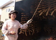 - 風にあて乾燥させ、燻煙のつきを良くし、火の通りを良くする。