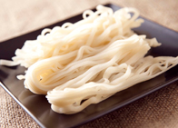 - 米粉麺をお湯に入れ、3分間茹でる。