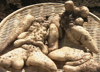 - ニンジンとジャガイモを適度な大きさに切り、油で火がとおるまで揚げる。