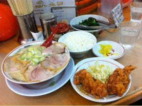 ラーメン+からあげ1コ+ごはん 750円又はラーメン+からあげ2コ+ごはん 850円と平日にはこんなサービスもあります。
