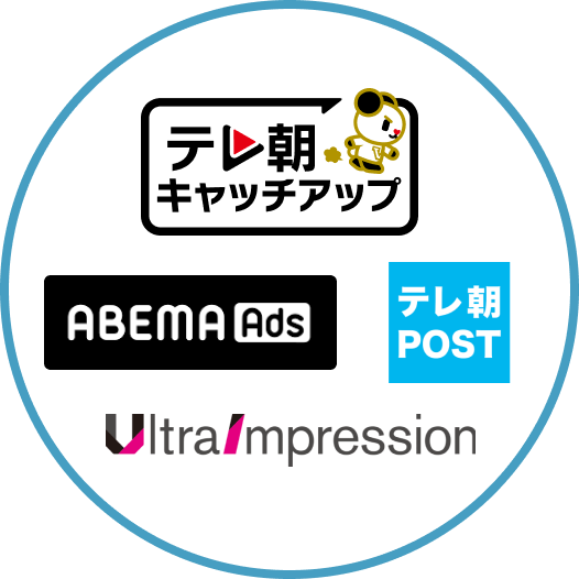 「テレ朝キャッチアップ」「ABEMA Ads」での動画広告や、「テレ朝POST」での番組連動記事、記事広告。さらには「UltraImpression」を用いたターゲティング広告など、様々なデジタル媒体での配信が可能。地上波とセットで配信する事例も増加中です。
