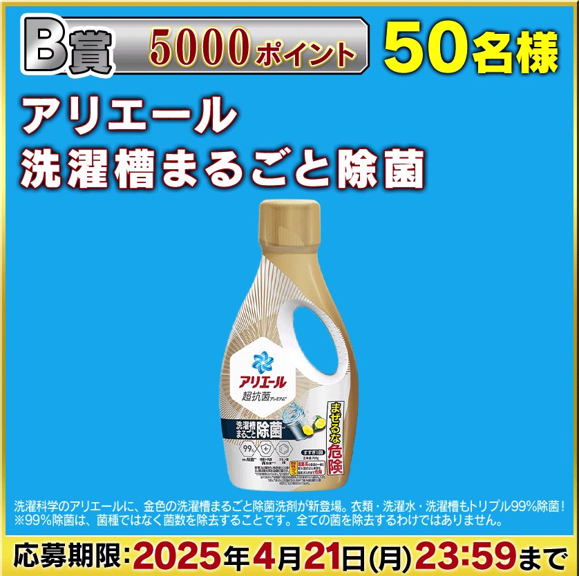 洗濯科学のアリエールに、金色の洗濯槽まるごと除菌洗剤が新登場。衣類・洗濯水・洗濯槽もトリプル99%除菌!