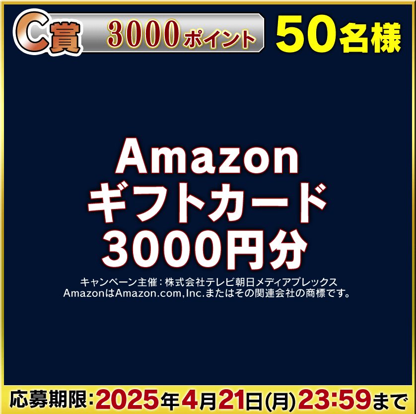 ※当選の発表は賞品の発送をもって代えさせていただきます(発送先は、テレ朝iDに登録されている住所となります)。