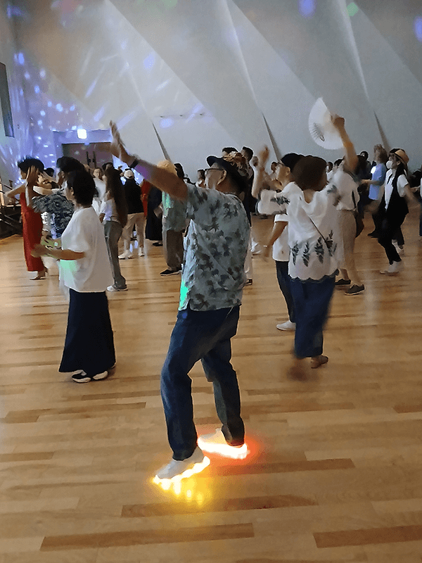 JINさんに教わったステップを踏む方、懐かしい思い出に浸りながら踊る方など、参加者の皆さんはそれぞれのスタイルでシルバーディスコを楽しまれていました。