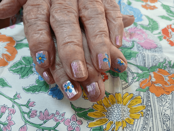 ネイルのケアでは、かつて美容院を2店舗経営されていた、お客様を綺麗にすることが大好きなご利用者様がいらっしゃいました。