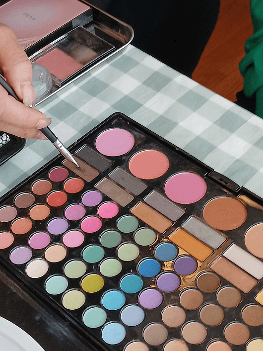 昔、銀座の百貨店で縫製のお仕事をされていた方は、普段からご自身で前髪を整えるなど、おしゃれにとても関心をお持ちです。ケアメイクの際も、「この色がいい!」と積極的に色を選ばれていました。