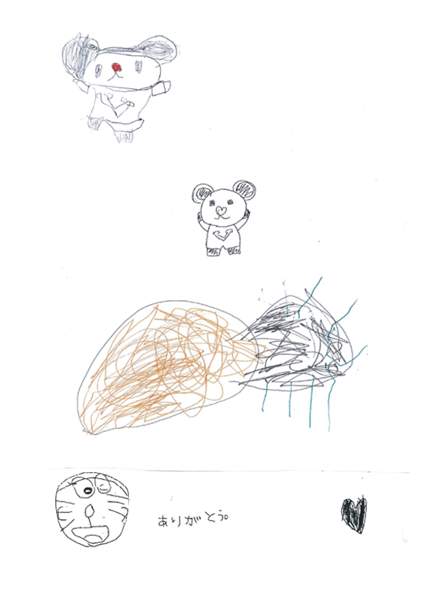 「ゴーちゃん。」の知名度も格段に上がっていて、小さい子どもたちが「ゴーちゃん。かわいいです」とアンケート用紙にたくさんの絵を描いてくれました。また施設の方からは、「何より、施設へのお戻りの際の親子の笑顔が印象的だった」と感動的なメッセージをいただきました。