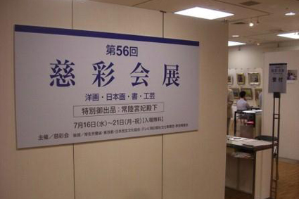 慈彩会は自然を愛し美を愛する各界の有志で、日ごろから絵画・書・工芸などに親しむ方々が集い、“社会福祉施設に絵を贈る運動”として1958年(昭和33年)に発足しました。毎年1回日本橋三越本店で展覧会を行っており、今年も「第56回慈彩会展」として開催されました。出品作品はすべて作者から無償で提供され、社会福祉施設に寄贈されています。また希望者への販売も行われ、収益金は助成金として社会福祉活動に役立てられます。