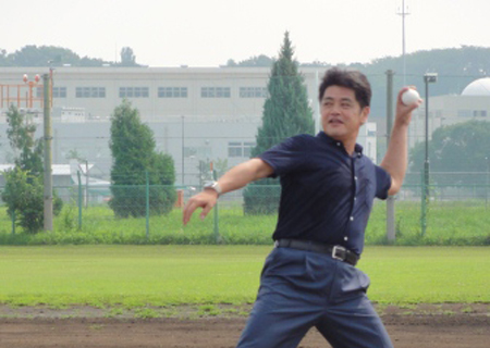 開会式では元プロ野球選手で「報道ステーション」の野球解説でおなじみの工藤公康氏が始球式を行いました。工藤さんは9チーム各々の児童との記念撮影や色紙・副賞品などへのサインにも快く応じられ、また、集まった子どもたちに気さくに激励の言葉をかけたりと子どもたちもスタッフも大喜びでした。