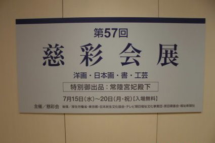 慈彩会は自然を愛し美を愛する各界の有志で、日ごろから絵画・書・工芸などに親しむ方々が集い、“社会福祉施設に絵を贈る運動”として1958年(昭和33年)に発足しました。毎年1回日本橋三越本店で展覧会を行っており、今年も「第57回慈彩会展」として開催されました。出品作品はすべて作者から無償で提供され、社会福祉施設に寄贈されています。また希望者への販売も行われ、収益金は助成金として社会福祉活動に役立てられます。