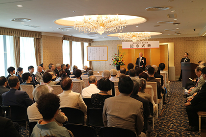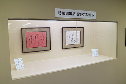 今年は第60回記念ということで、記念式典も開催されました。54回も出展された女性書家の方などに感謝状が贈呈されました。また、この展覧会には毎回、常陸宮妃殿下からも御出品いただいており、今回も妃殿下の「新年歌会始の詠進お歌」(書)の特別御出品をはじめ、総計164点もの作品が出展されました。洋画・水彩画・日本画・書・工芸・写真と多岐にわたる素晴らしい作品が会場に所狭しと飾られ、中には思わず笑いを誘うユニークな作品や、109歳の作者の「ちぎり絵」などもあり、見ごたえのあるものとなっていました。