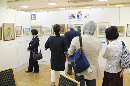 慈彩会は自然を愛し美を愛する各界の有志で、日ごろから絵画・書・工芸などに親しむ方々が集い、“社会福祉施設に絵を贈る運動”として1958年(昭和33年)に発足しました。毎年1回日本橋三越本店で展覧会を行っており、今年は第60回記念展として開催されました。出品作品はすべて作者から無償で提供され、社会福祉施設に寄贈されています。また希望者への販売も行われ、収益金は助成金として社会福祉活動に役立てられます。