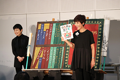 中井さんが話し始めると、ステージの上の大きな絵本も開きます。
