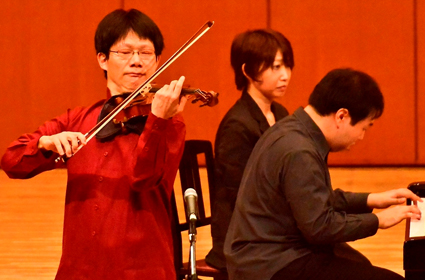 今回もスペシャルゲストとして世界的に活躍しているヴァイオリニストの川畠成道さんをお迎えしました。川畠さんは、繊細で柔らかなヴァイオンの音色で聴衆を魅了し、万来の拍手が会場に鳴り響きました。
