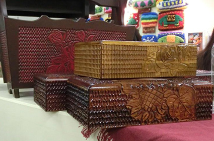 「わたしたちが創る展」は、知的障がい・自閉症児者施設総合福祉センター「弘済学園」の紹介パネルや、利用者の作業学習から生まれた木彫、織物、タイルモザイク、ビーズ作品、鉢花等を展示しています。多くの人々に利用者の作品を見て、触れてもらい、そこから福祉への関心と理解を深めてもらうことを目的に開催しています。また、同会場では知的障がい・自閉症児者に関する療育相談会も行われています。