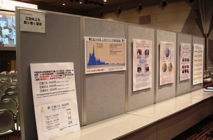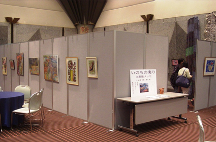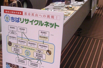 今回の会場は間仕切りを取り払って2つの会議室が使われました。広くなった会場には例年通りエントリー全作品の展示や製品の販売などのブースが設置されたほか、新たに働く障がい者の創作展コーナー・工賃向上研究のパネル発表・ちばリサイクルネットの実演などが加わり、盛りだくさんのイベントになりました。