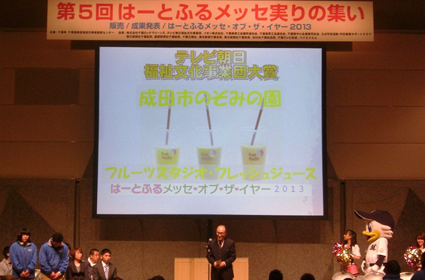 3月8日(土)、「第5回 はーとふるメッセ実りの集い」が、幕張メッセ国際会議場・コンベンションホールで開催されました。この催しは、千葉県内で働く障がい者の仕事に光を当て、工賃向上の必要性をアピールするとともに、地域での一人ひとりの豊かな社会参加を目指しています。そして、障がい者事業所の最も優れた製品や活動に対して「はーとふるメッセ・オブ・ザ・イヤー」の称号を贈っています。