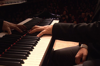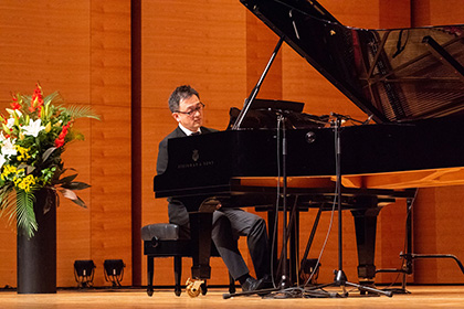 川畠さんのヴァイオリンを期待して来られているお客様も多く、その繊細で厚みのある音色を体験し、「感激した」「鳥肌が立った」と多くの喜びの声を頂戴しました。また智内さんのピアノは、本当に左手だけで演奏されているとは思えないような音色です。そこで今回、智内さんの手元を撮影した映像をスクリーンに映写する試みをしたところ、「本当に左手だけで驚いた」「感動した」と多くの感想を頂戴しました。お2人とも演奏される曲目を解説しながらそれぞれ40分近くの見事なステージを披露していただきました。