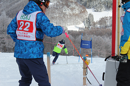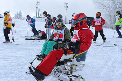 今回開催の菅平は、気温が低く雪質がよいことで知られ、初級者から上級者まで多くのスキーヤーに長年親しまれ、愛されてきたスキー場です。北は秋田県、南は愛知県から、障害がない人も含めて計32人が選手として参加。また地元スキー場、スキークラブをはじめとするボランティアの皆さんにコース設営や運営、安全管理にご協力いただきました。