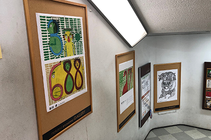 これを企画している「社会福祉法人愛成会」(中野区)は、社会福祉の視点から「アール・ブリュット」の周知に主導的な役割を担ってきた団体の一つで、創作活動をする障がい者やアトリエなどを提供する施設の調査・発掘、各方面への紹介や周知活動、権利を含む作品の保護、関係団体への情報提供、さらに国内外の展覧会の企画制作などを手がけています。このイベントは、地域社会を巻き込んで、オープンなスペースをフル活用して一般のだれもが作品や作家情報を見られるようにしようと、2011年に始められました。商店街組合など地元関係者の理解と積極的な協力を得て毎年開催しており、9回目となった今回も1月25日から3月3日までの長期展示となりました。