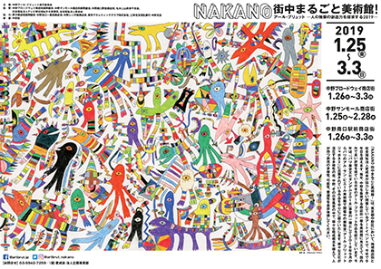 こうした現状から、当事業団は障がい者福祉事業の一環として、新たに「アール・ブリュット」の展覧会開催や普及活動に協力することにしました。その第一弾が、東京・中野区のJR中野駅周辺の4つの大型商店街一帯で「アール・ブリュット」の作品や作家の紹介・展示が行われるこの「NAKANO街中まるごと美術館!アール・ブリュット ~人の無限の創造力を探求する2019~」です。