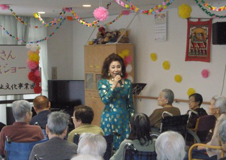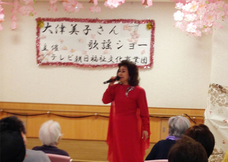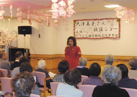4月12日、板橋区のケアハウス「志村ハイライフ」で大津美子さんの歌謡ショーを開催しました。