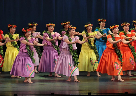 第16 回を迎えた今年は、6月27日、28日の2日間、中野サンプラザホールに19組385名のクプナ(ハワイ語で「年配者」の意味)が集まり、日ごろの練習の成果を披露しました。