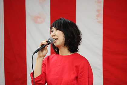 待望の「上を向いて歩こう」を全員大合唱で楽しんだ後は、美空ひばりさんの「日和下駄」。大島花子さんがファーストアルバムでカバーしている曲でもあります。アップダウンが多く難しいこの曲を軽快に歌うと、「上手いっ」、「凄い」、「ああステキ」などの声が飛び交い、笑顔があふれました。