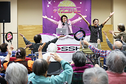 テレビ朝日福祉文化事業団の新しいプロジェクト、DJ OSSHY さんを迎えた高齢者向けの初のディスコショーを開催しました!