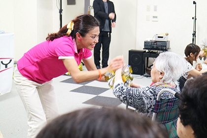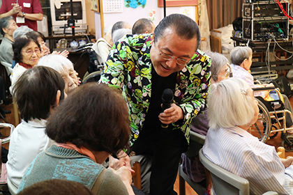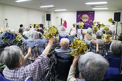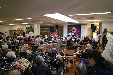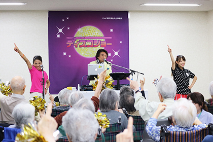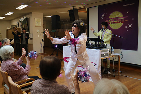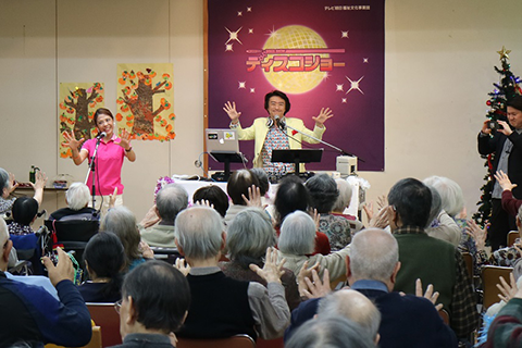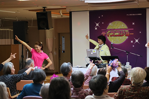 ディスコショー」。テレビ朝日福祉文化事業団の高齢者福祉事業のレギュラーとなり、早々とご応募いただいた中から、今回は特別養護老人ホーム「陽のあたる丘MISONO」(横浜市)に伺いました。
