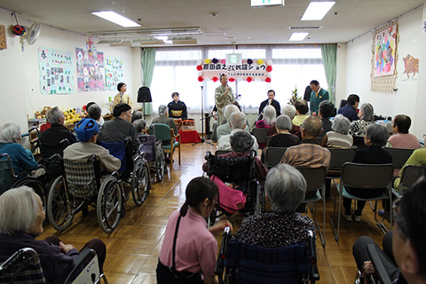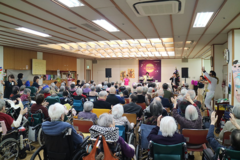「大変素敵なショーの機会を設けて頂きましてありがとうございました。入居者、職員一同、今も興奮が冷めやらぬままとなっております」と後日施設からメッセージをいただき、私たちも嬉しい新年の幕開けとなりました。