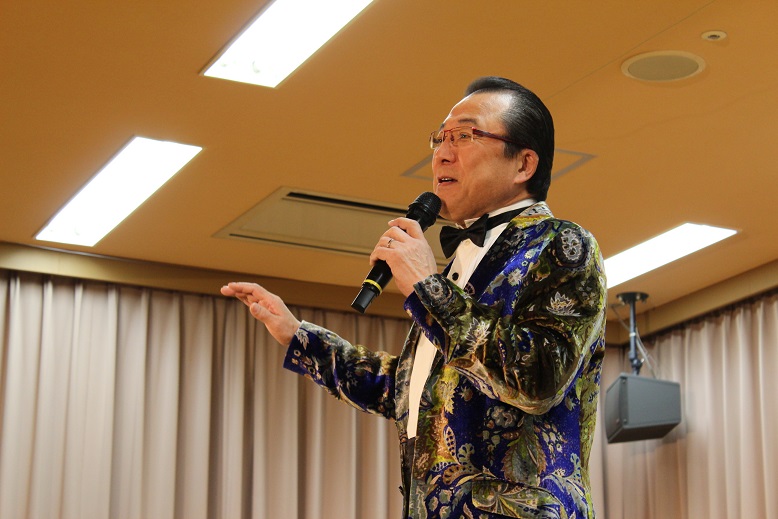 その後は昭和26年のヒット曲「あざみの歌」、原田さんが尊敬してやまない故三橋美智也さんの「達者でナ」と昭和歌謡を披露され、「ある夫婦のうた」では原田さんご夫妻の息の合ったデュエットに会場も聞きほれました。続いて原田さんも関わられている東日本大震災復興ソング「花は咲く」を唄われ、場内でも沢山の方が口ずさんでいました。