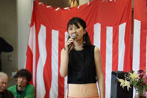 今年81歳のこまどり姉妹さんから、これまで数々の苦難を克服してきた貴重なお話を直接に聞くことができ、参加者はたいへん励まされたようでした。こまどり姉妹さんが、ラーメンが大好きだということで作られた新曲「こまどりのラーメン渡り鳥」を陽気に歌うと、会場は大きな手拍子で盛り上がりました。