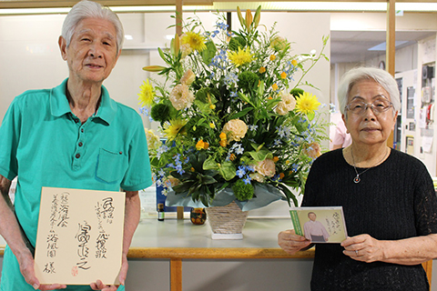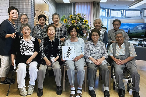 ご入居者様と相談し、大津美子様の歌声を楽しみにしておりましたので、今回のお花、色紙、CDのプレゼントに、事業団の皆さまのお心使いに感激しております。本当にありがとうございました。