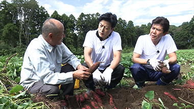 収穫のお手伝いに励んだ後、2人は安さんの自宅にある自家製ピザ釜で、“サツマイモのピザ”と“焼き芋”をご馳走してもらう。べにはるかの香り、甘さ、食感に大いなる感動を味わった2人。さらに、おいしいサツマイモを作るために安さんがこだわっているさまざまな作業を目の当たりにして、その情熱に脱帽する。