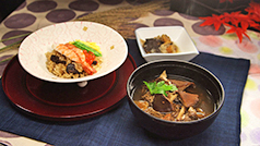 大沢あかねさんときのこを知り尽くした山岡昌治シェフ。きのこ採りの匠、神宮司孝之さんを訪ね、匠の案内で、山できのこ採り。きのこ探しのポイントや山岡シェフから調理のコツを教わる。