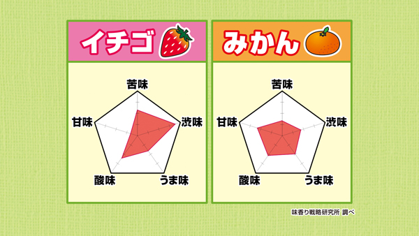 イチゴとみかんの味を比べると・・実はイチゴの方が甘味が少なく、苦味や渋味が多いのです。