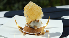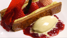 シェフは、近藤さんが育てたイチゴを使って、絶品スイーツ“いちごのミルフィーユ ピスタチオアイス添え”を作る。