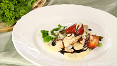 「金目鯛のブルーチーズソース 〜菜の花とイチゴ添え〜」