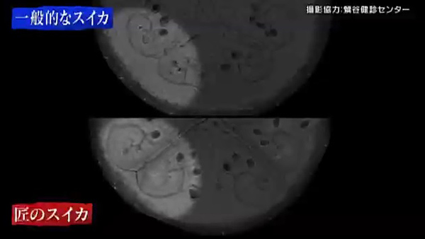 収穫作業を手伝って、スイカ作りの大変さの一端を実感した2人。その後、篠原さんのスイカがどれくらい甘いのか、糖度計で計測してみたところ、意外な事実が判明する。一般的なスイカは中心に甘味が集まっているのが特徴なのだが、なんと篠原さんのスイカは中心部と皮に近い実の糖度が、わずか0.1度しか差がなかったのだ。なぜ篠原さんのスイカは端まで甘いのか、番組ではMRIでスイカの内部を確認してみるが…!?