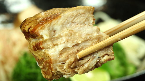 さらに、ひと晩置くことで余分な脂肪分が抜け、格段に柔らかい角煮になると言います。 - 豚肉を柔らかく仕上げたシェフの技