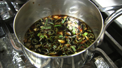 (1)材料を刻んで、鍋で15分程煮詰める。(弱火)