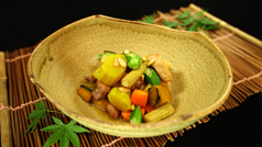 「みやじ豚とゴロゴロ夏野菜の大学芋風」