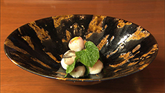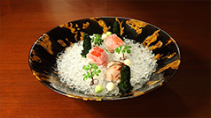べっ甲天目大鉢に盛り付けた「金目鯛の刺身」