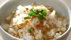 (3)しょうゆ・ちりめんじゃこを加え、水分が飛ぶまで煮詰める
